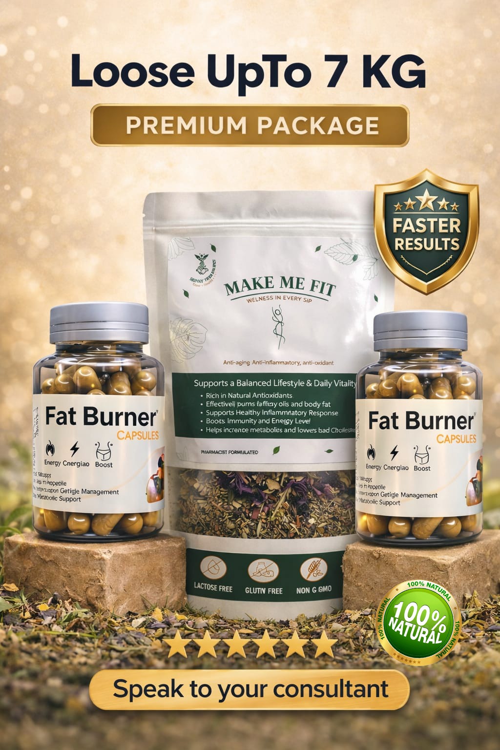 Achieve a healthier, slimmer, and glowing body naturally with our Premium Herbal Weight Loss Tea + Fat Burning Capsules Combo — specially designed for fast, visible, and safe results.